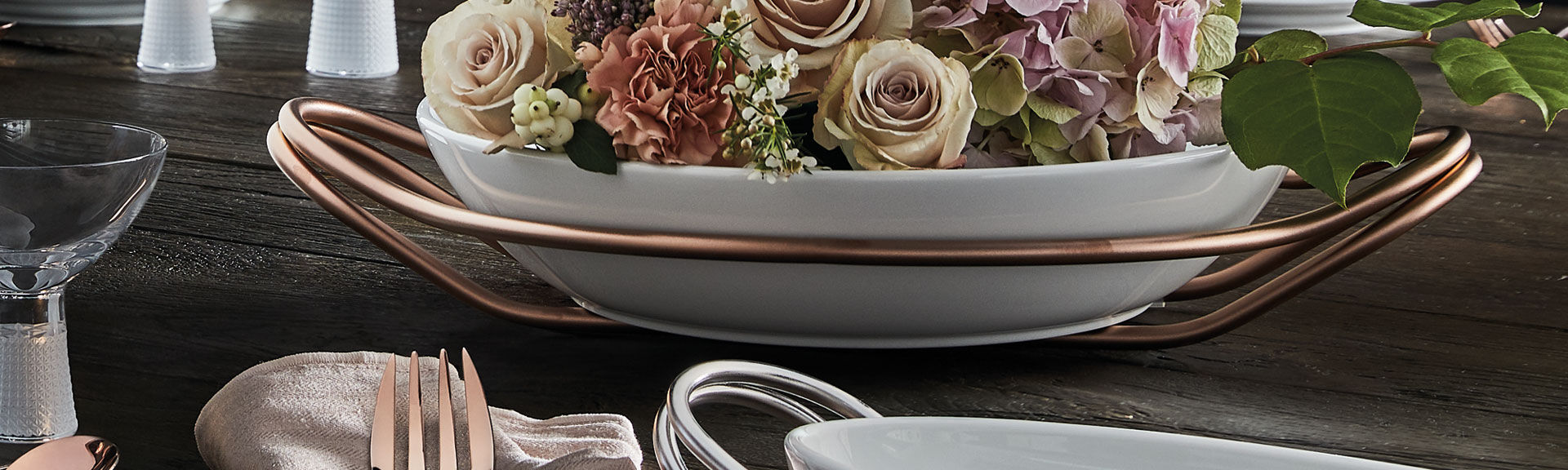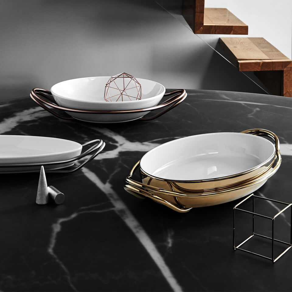 The PVD gold and copper colours embellish your table. PVD - acronym for Physical Vapour Deposition - gives objects precious colours and shades. The coating welds to stainless steel at an atomic level, giving it greater hardness and resistance to wear, rubbing and corrosion, inhibiting the formation of rust or oxides.