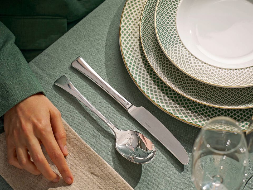 Triennale by Sambonet brings together clean lines, balanced proportions, and a distinctive visual identity. Designed for those who appreciate refined table settings, this flatware collection adds structure and character to both everyday dining and more curated occasions.