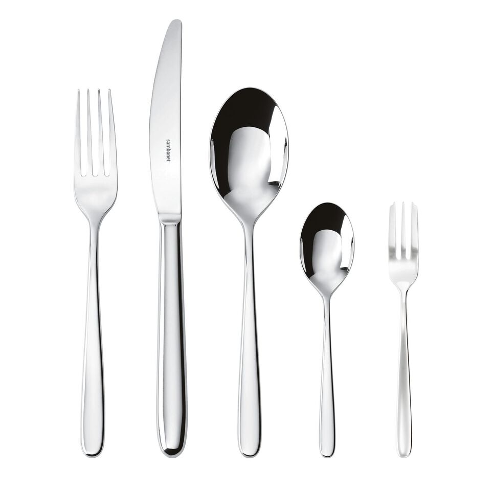 Forks are placed to the left of the plate, in the order of use from the outside to the inside. There should be no more than three forks, with tines pointing up. Standard, fish or meat knives are always placed to the right with blades turned toward the plate. The soup spoon, if any, is placed to the right, in the outermost position next to knives. Fruit and dessert flatware is placed horizontally above the plate: knife with blade towards the plate and handle to the right, fork with tines pointing up and handle to the left. The dessert spoon is placed in the outermost position with the handle to the right, like the knife.