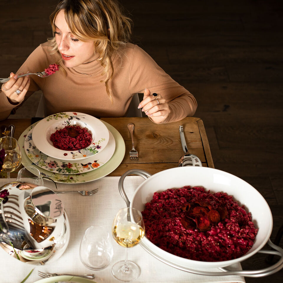 Whether it is a patterned or solid colour model made of linen or cotton, the secret is that it should perfectly fit both the tones of the occasion and the other protagonists of your table. If you already have a beautiful table and are seeking a trendy look, just replace the tablecloth with placemats, runners or refined show plates for every guest. Even if they look very pretty, these solutions are recommended for informal situations and for breakfast only and never for lunch. Every napkin is placed to the left of the plate.
