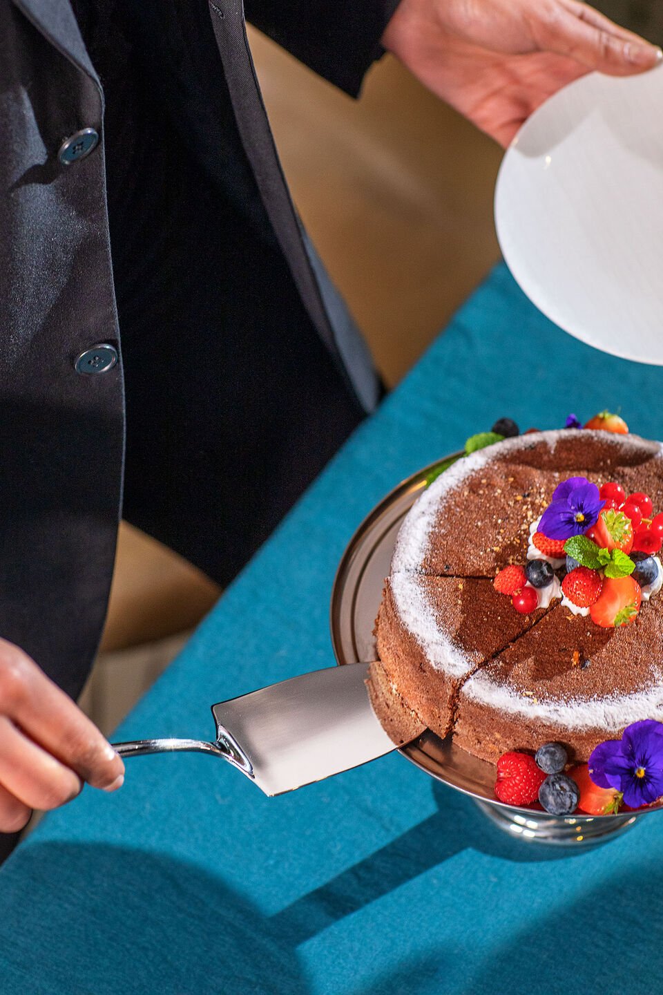 Sambonet’s cutlery knives vary from the steak knives and those from the flatware collections in that there are an abundance of different available knives, each to serve a various purpose. All pieces are of the highest class, made entirely in Italy and with top notch quality and design. Carving knives come in both stainless steel and silverplated versions and are excellent for slicing, carving and serving roasts, turkeys and other meats. The two available cake knives are a must have to add to your kitchen cutlery. Whether the preference is silverplated or stainless steel, the serrated edge, sturdy handle and comfortable length make slicing into that chiffon cake or three tiered chocolate masterpiece an elegant show in itself.