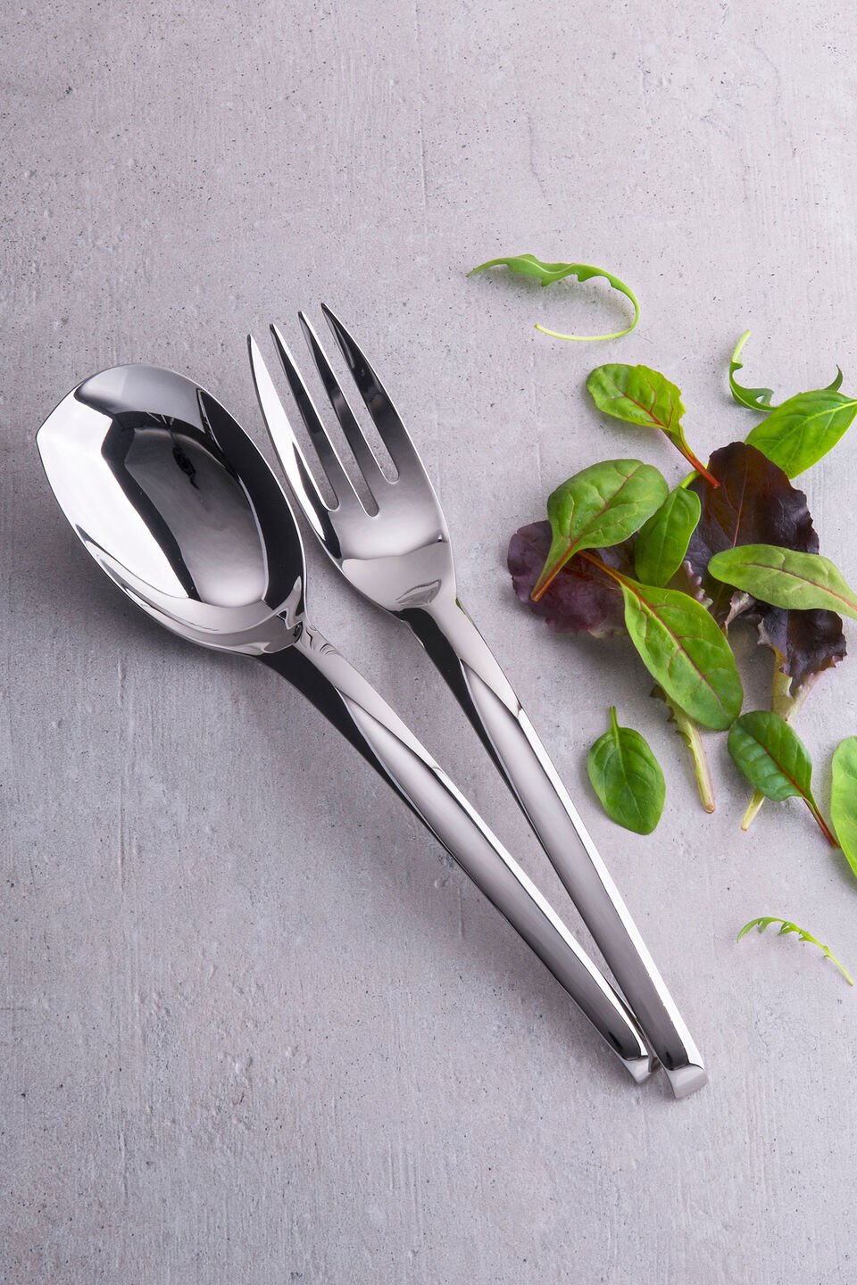 It is not only important to have the proper utensils alongside your dinner plate to accompany your meal, but it is vital to have the right tools for serving and handling what you present, be it a tiered cake to a succulent roast. Sambonet is proud to present a vast array of specialty cutlery, made with the finest quality materials, to both embellish and facilitate the serving experience. Each cutlery set has a unique form to match the flatware set of the same name. Whether it is the Rome silverplated carving knife or the Living stainless steel spaghetti serving forks, each piece fits in wonderfully with the forks, spoons and knives of the different collections. Uniformity and elegance to the extreme. Each piece of cutlery serves a specific purpose and comes either in a silver cutlery version or can be found as a stainless steel cutlery set. With each piece of cutlery, Sambonet reminds us over and over again of the timelessness and high quality that has been brought to the luxury sector over the past years.