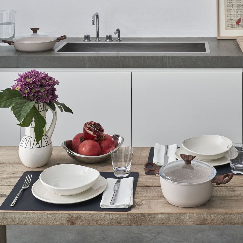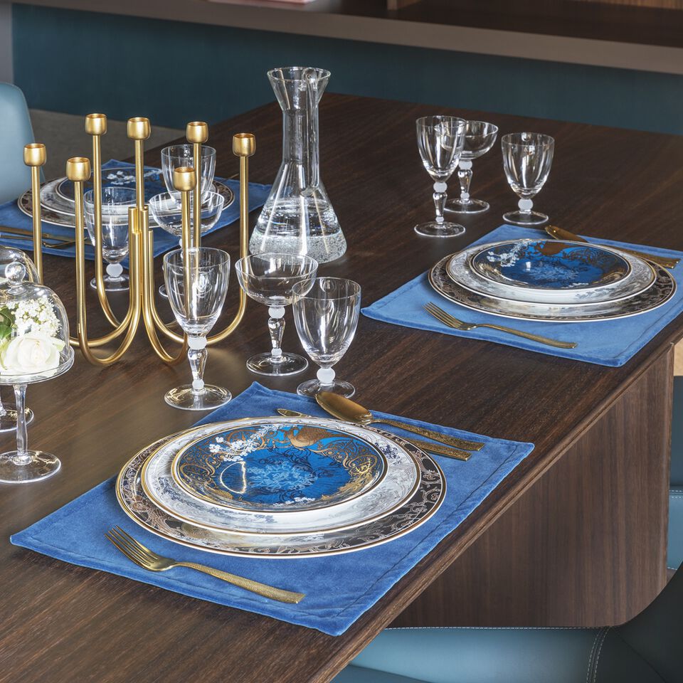 The placement of forks and knives, following the flawless rule of setting from the outside in, sets the stage for a meal served with impeccable manners. Centerpieces with features of beauty and design, become the focal point of an inspiration-packed set-up, as well as serving accessories and consideration for welcome and good manners. Showplates add a decorative element to the table, while placemats provide an elegant and modern presentation for plates and utensils.