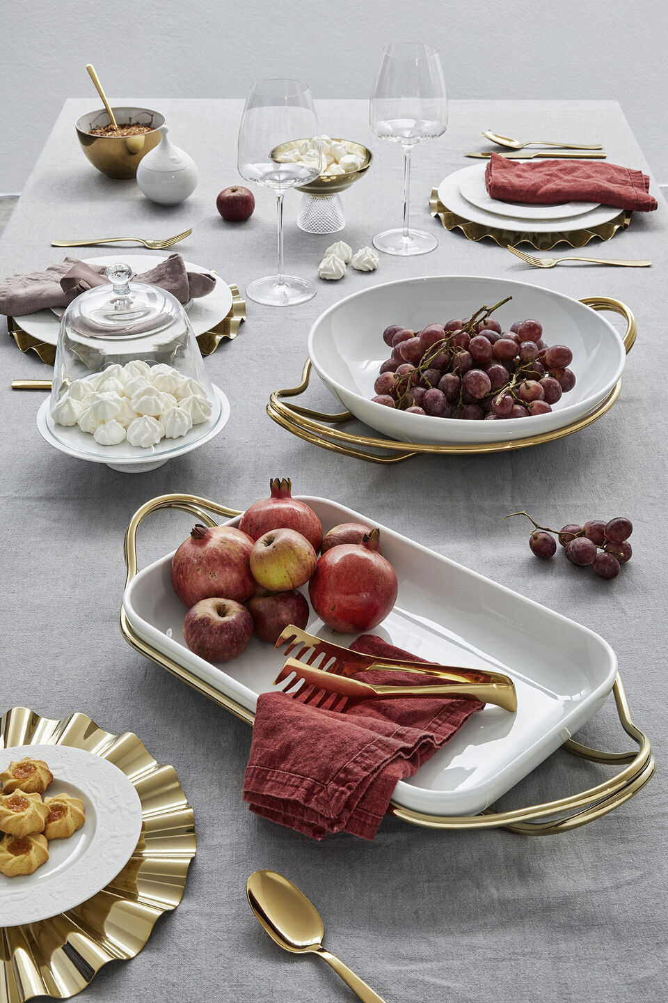 Handle silverware as indicated for stainless steel items. Never use any type of scraper or steel wool, which would permanently damage the silver deposit. Silver can sulphurate due to exposition to air, becoming dark in a more or less uniform way. This can happen also as a consequence of the contact with some foods. It is a natural process which does not damage the silver deposit but alters its look. The silver coat must be polished in order to restore the original state with good silver polishing products. Please make sure these products have to be diluted in warm water only.