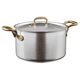 Before use wash in warm soapy water, rinse and dry. Never place empty cookware on a heating element. Do not allow gas flames to go up the sides of the pan. Heat pan up gradually and reduce heat when water boils. The thermoradiant bottom will keep uniform temperature inside the pan. When using salt, wait until the water is boiling to add it and allow it to completely dissolve. Salt deposited may react chemically and electrolytically causing pitting in the stainless steel. When washing do not use detergents containing chlorine, for example bleach, as they may corrode stainless steel. Avoid strong hits and thermal shocks. Do not cool it down suddenly. Do not use salty foods or containing lemon, vinegar, tomatoes to store. To remove halos due to overheating clean it with a specific stainless steel cleaner only. To remove white chalk deposits in the cookware, boil water with vinegar, leave it until it gets cool and then wash it normally.