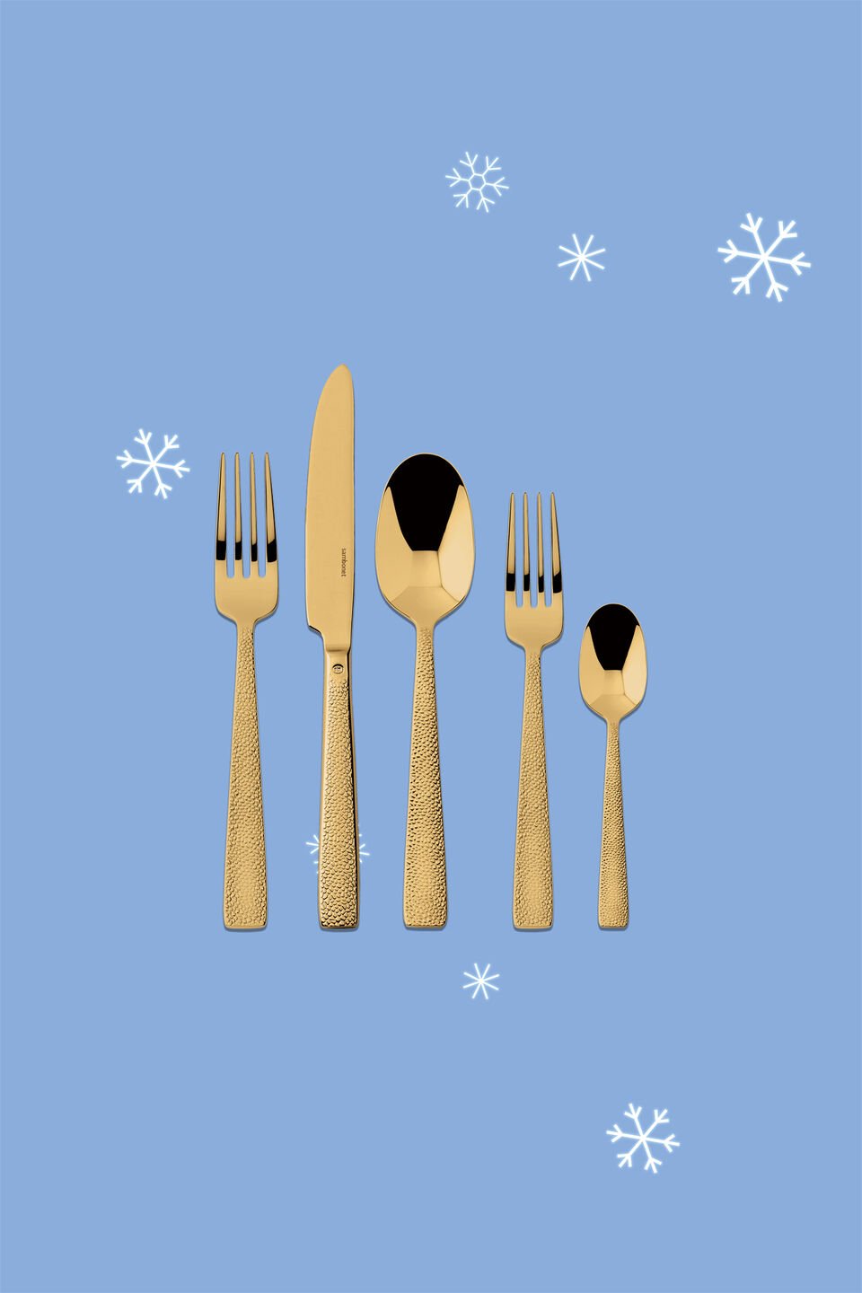 Discover our exclusive selection of flatware sets, available in both stainless steel and PVD. Our sets are perfect for your holiday occasion: choose between the 5-piece set for everyday use, or our 20 and 40-piece sets, perfect for 4 or 8 people respectively. Our customers really appreciate the 20 and 40 piece sets, attracted not only by their quality but also by the serving set (spoon and fork) included as a gift. For larger gatherings, opt for our 60-piece set, perfect for serving up to 12 people. Take advantage of the Winter sales to renew your table with elegance and style