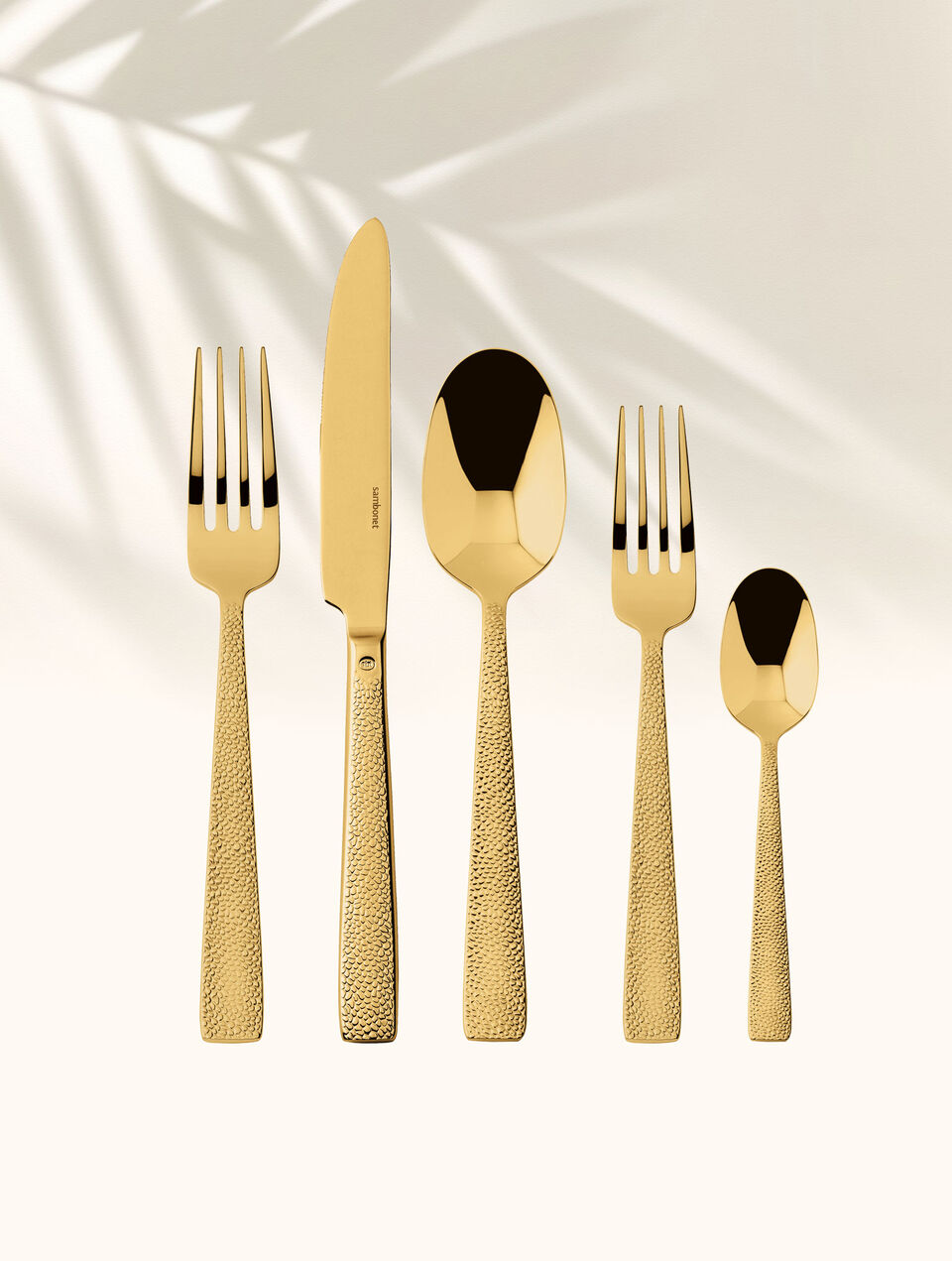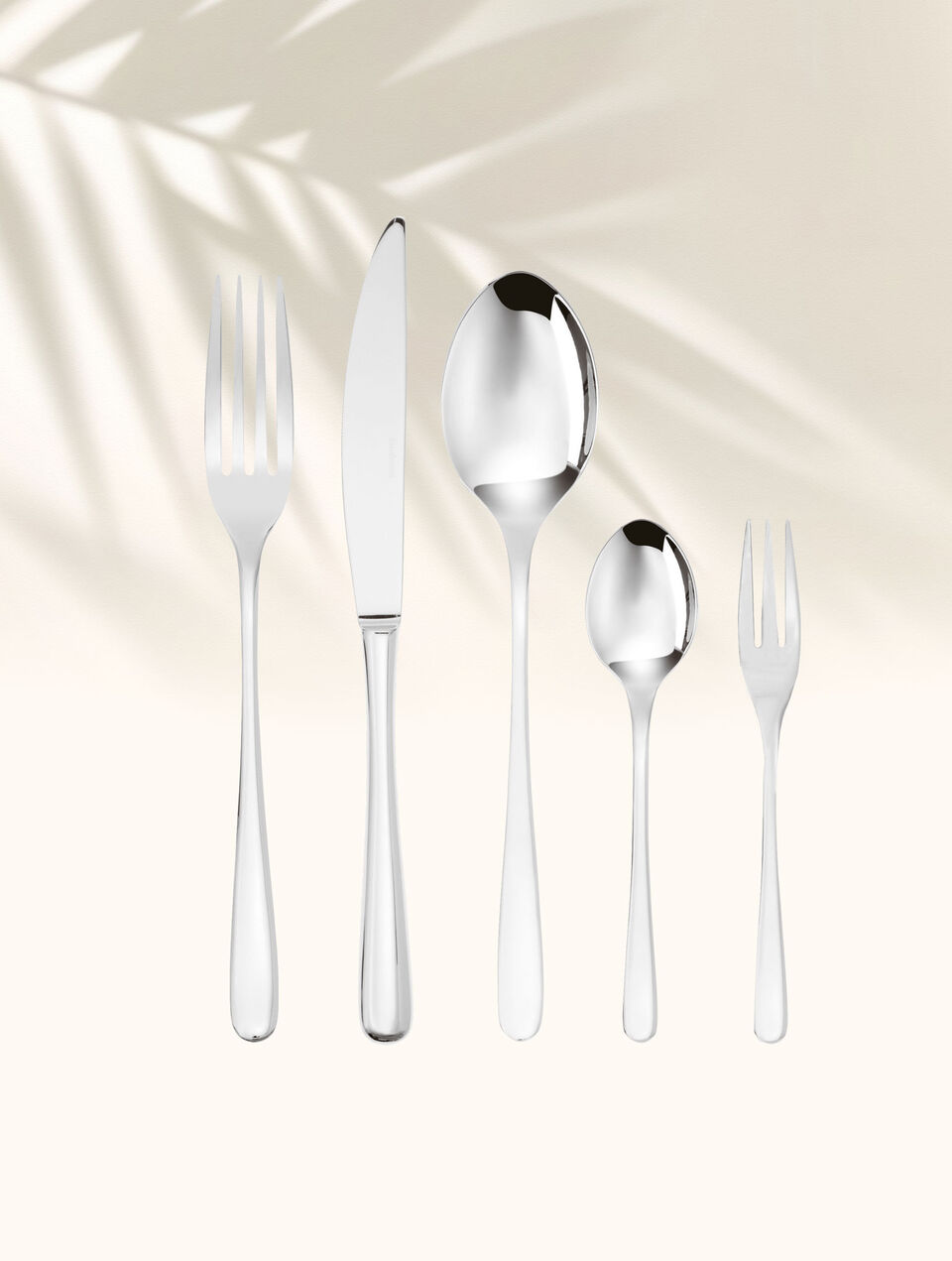 Discover our exclusive selection of flatware sets, available in both stainless steel and PVD. Our sets are perfect for any occasion: choose between the 5-piece set for everyday use, or our 20 and 40-piece sets, perfect for 4 or 8 people respectively. Our customers really appreciate the 20 and 40 piece sets, attracted not only by their quality but also by the serving set (spoon and fork) included as a gift. For larger gatherings, opt for our 60-piece set, perfect for serving up to 12 people. Take advantage of the summer sales to renew your table with elegance and style